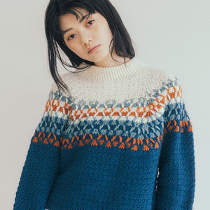 パターンは全部で9点。世界中から才能あふれる7人のデザイナーが参加してくださり、編むのも着るのも楽しい作品がそろいました。あなたの創造力を刺激してくれるデザインと技法がたっぷり。