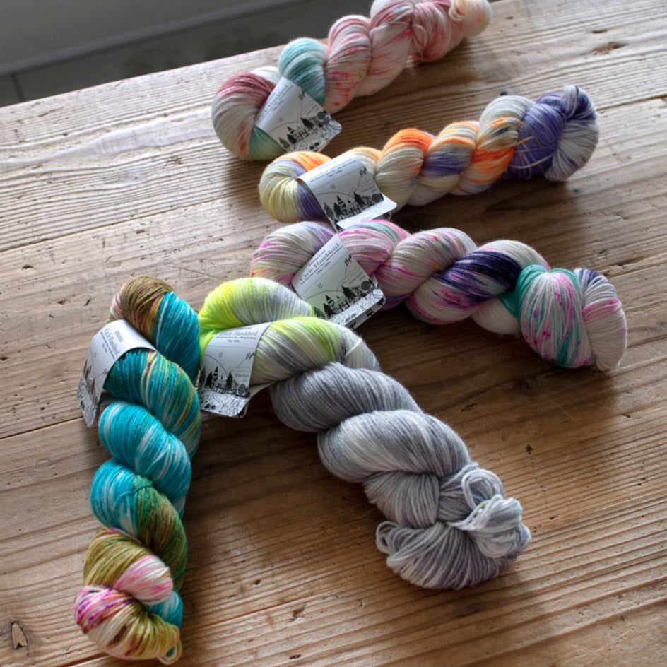 ヨリのある4プライヤーン。使い勝手の良いFingering Weightです。軽めのウェアから、靴下やショールを編むのにおすすめです。