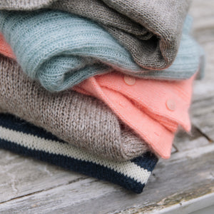 エアリーなモヘアのパステルカラーセーターやゆったりとしたケーブルカーディガン、