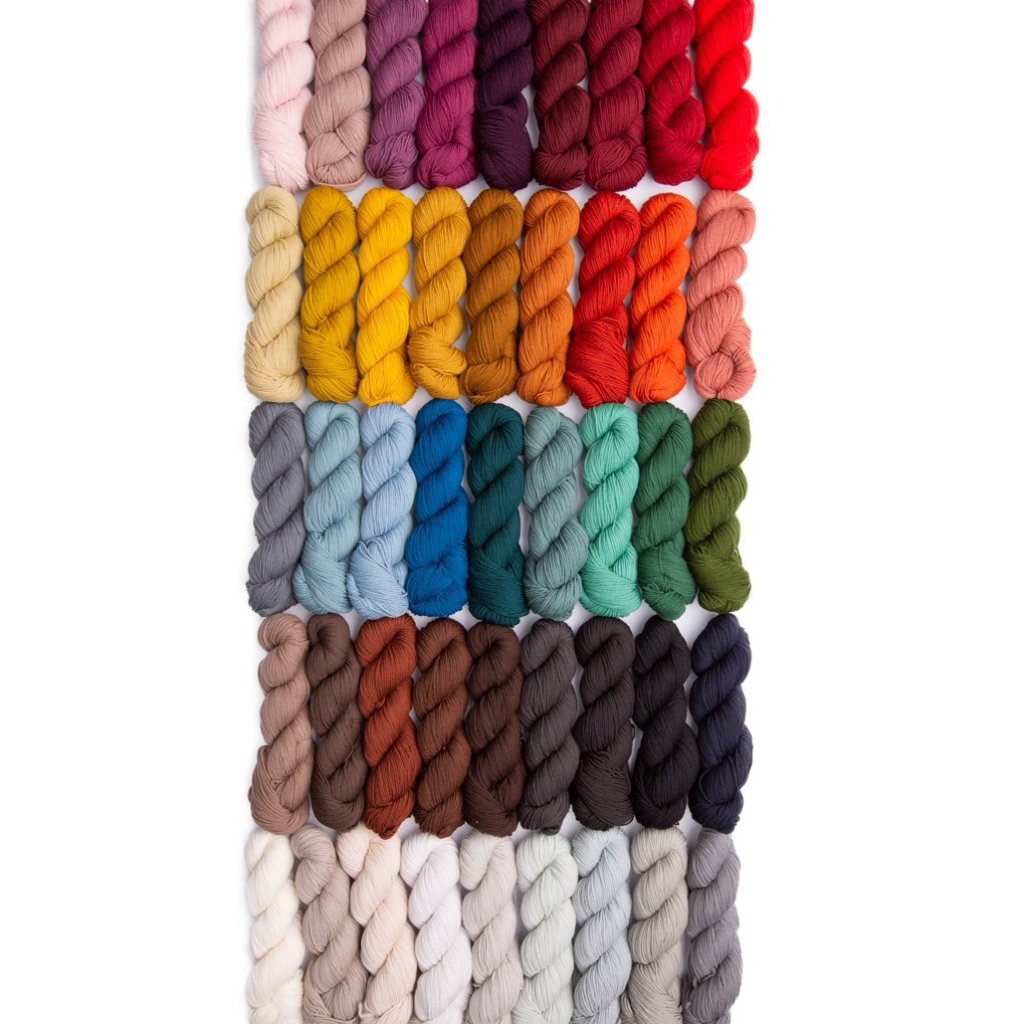 ArborはSportからDKの太さの撚りがきつめの糸。とにかく編みやすく、模様がハッキリ出るのが特徴。発色もいいので、小物にもオススメです。