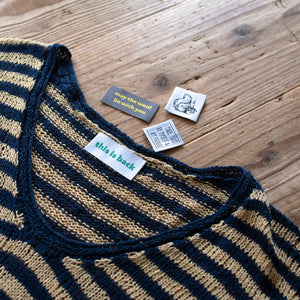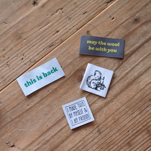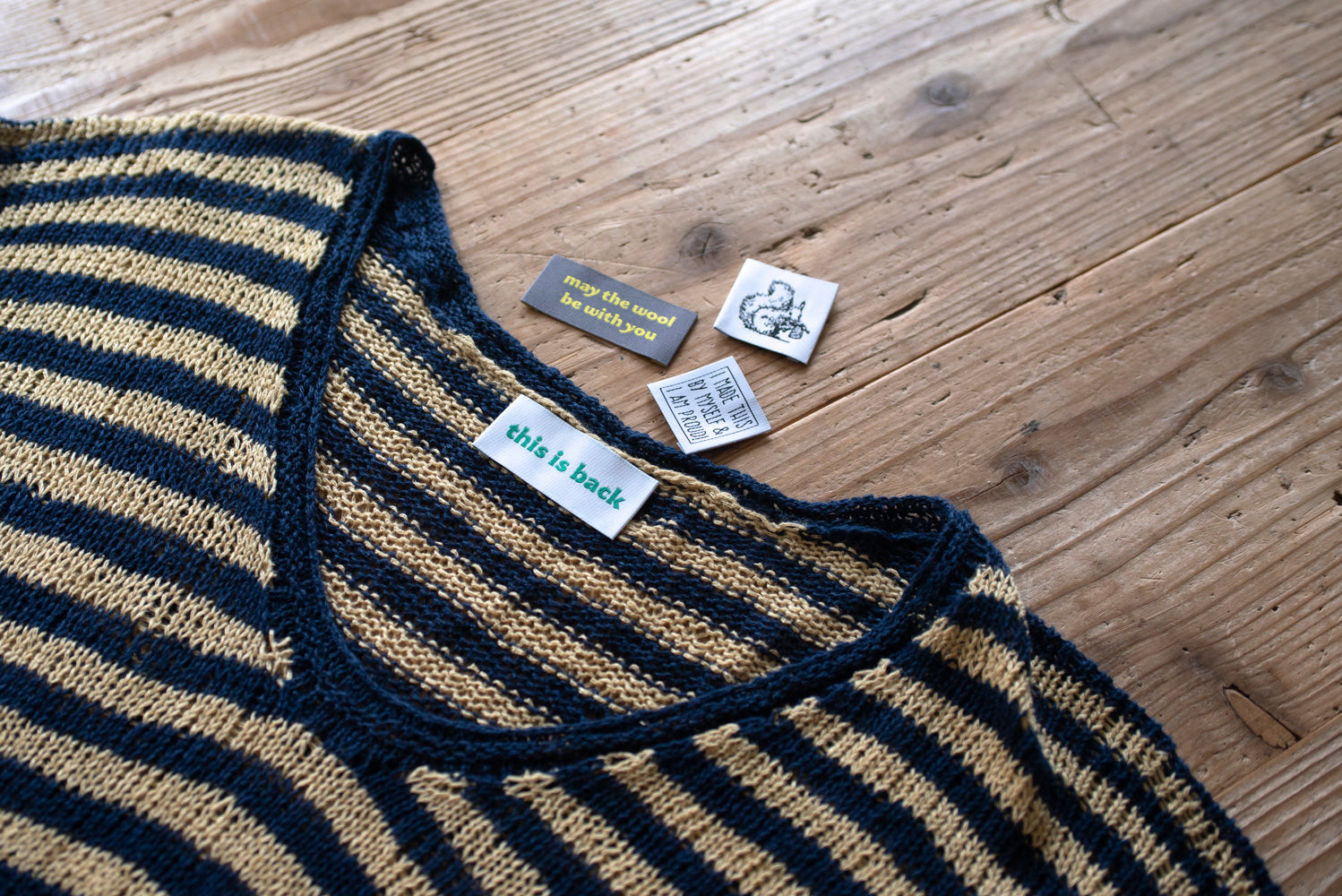ひと目ずつ大事に編んだニットに付けたい、amirisuオリジナルの織りネームラベルです。作品の仕上げに付ければちょっとグレードアップ。