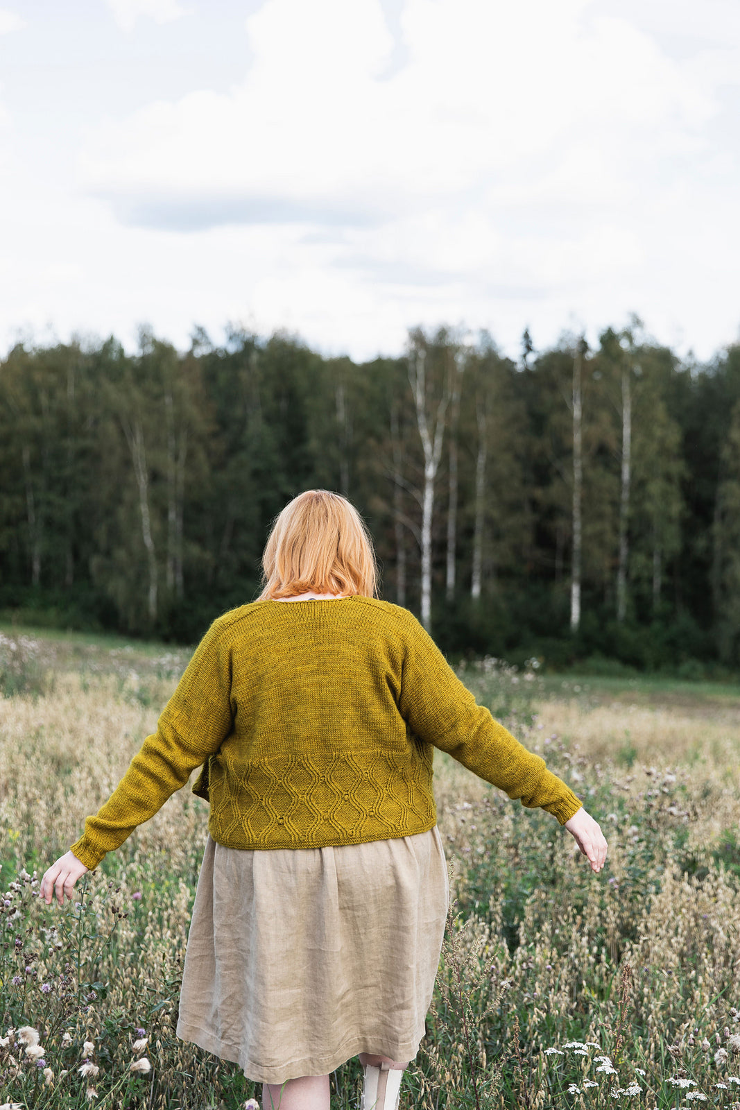毛糸らしいDe Rerum Natura Gilliattで編めば、ケーブル模様がふかふかに浮き上がります。ベーシックナチュラルな装いに合う一着になります。