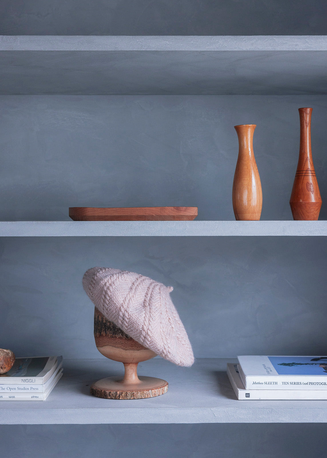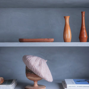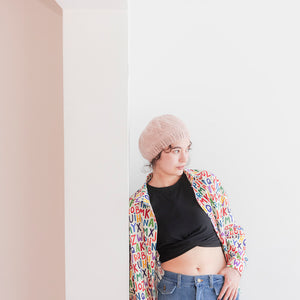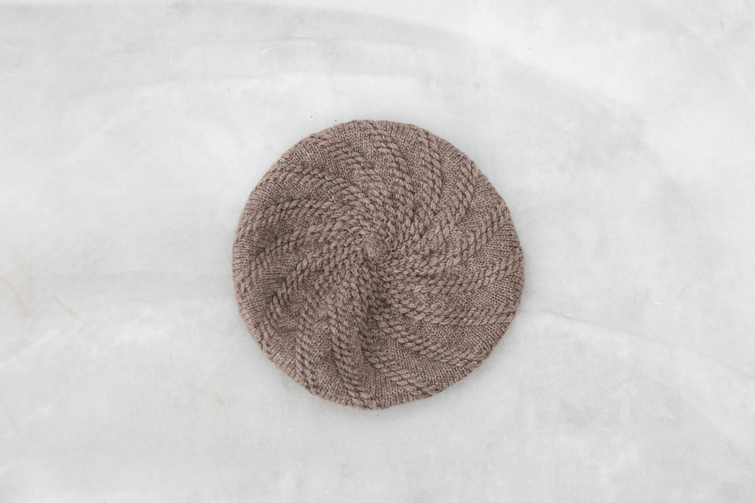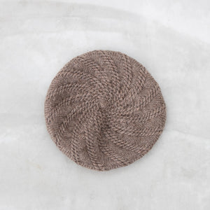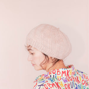 柔らかな GENMOUで編むので頭の形にふんわり馴染んで気軽にかぶれます。
