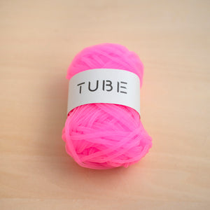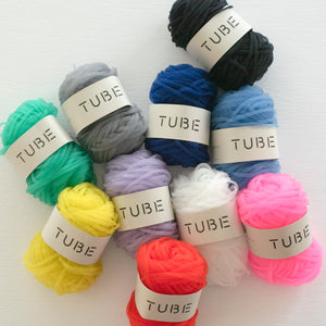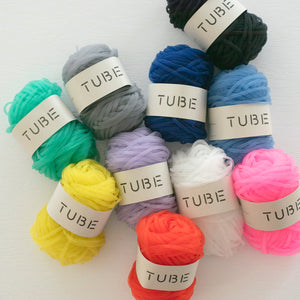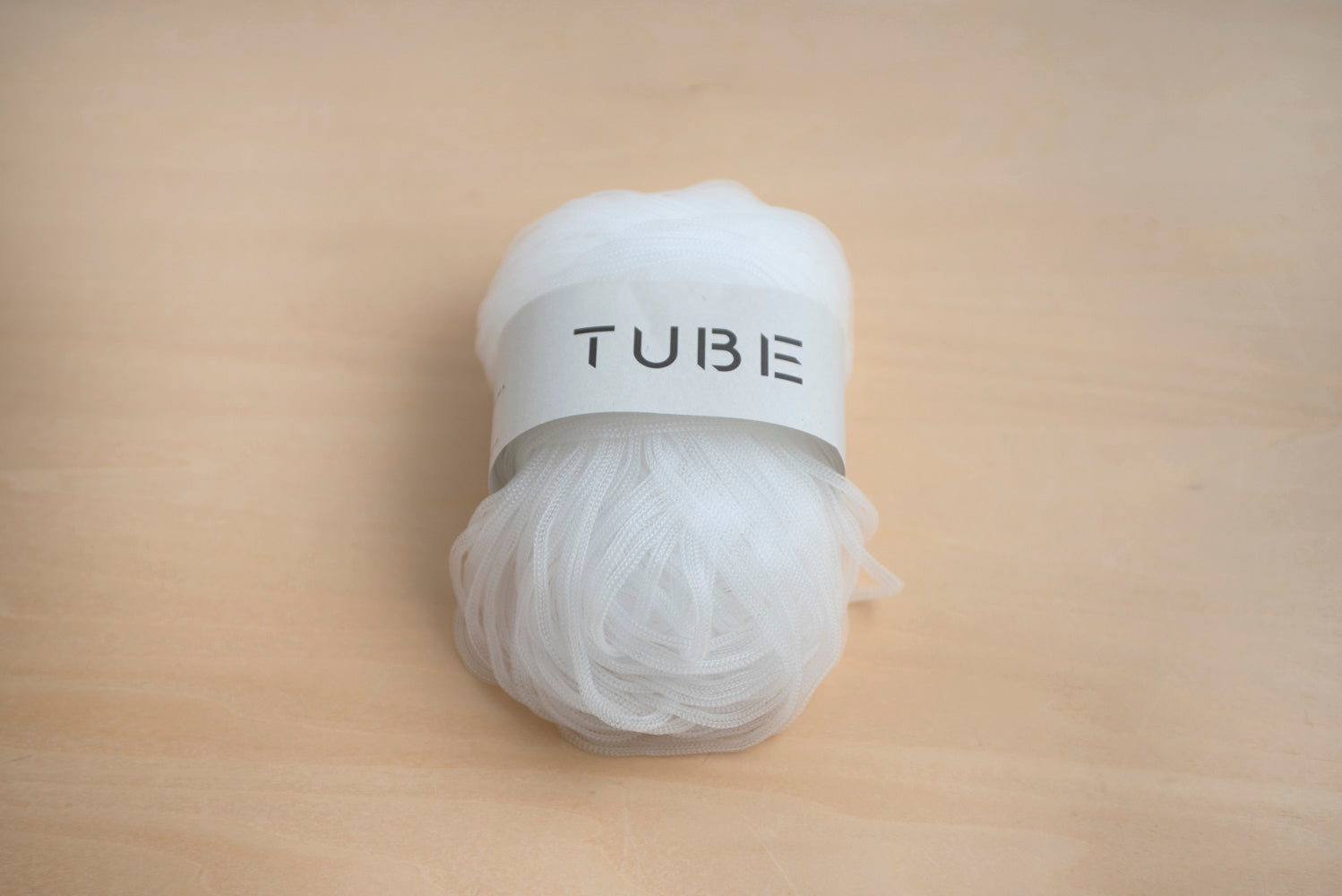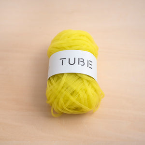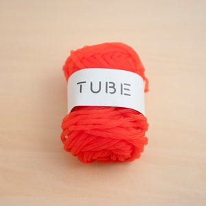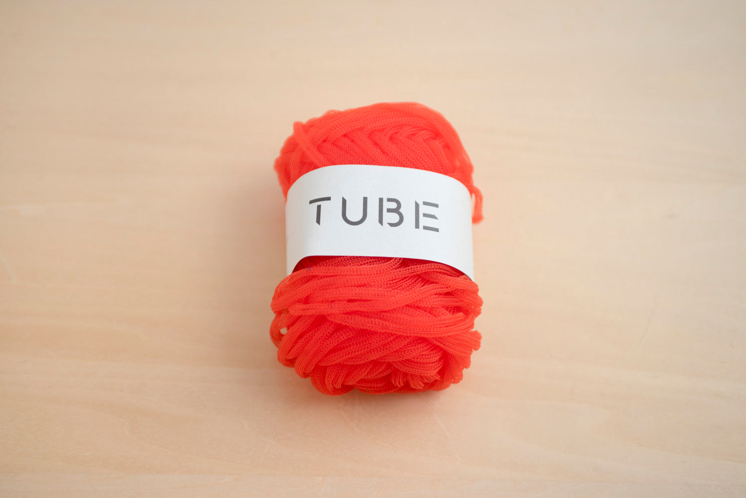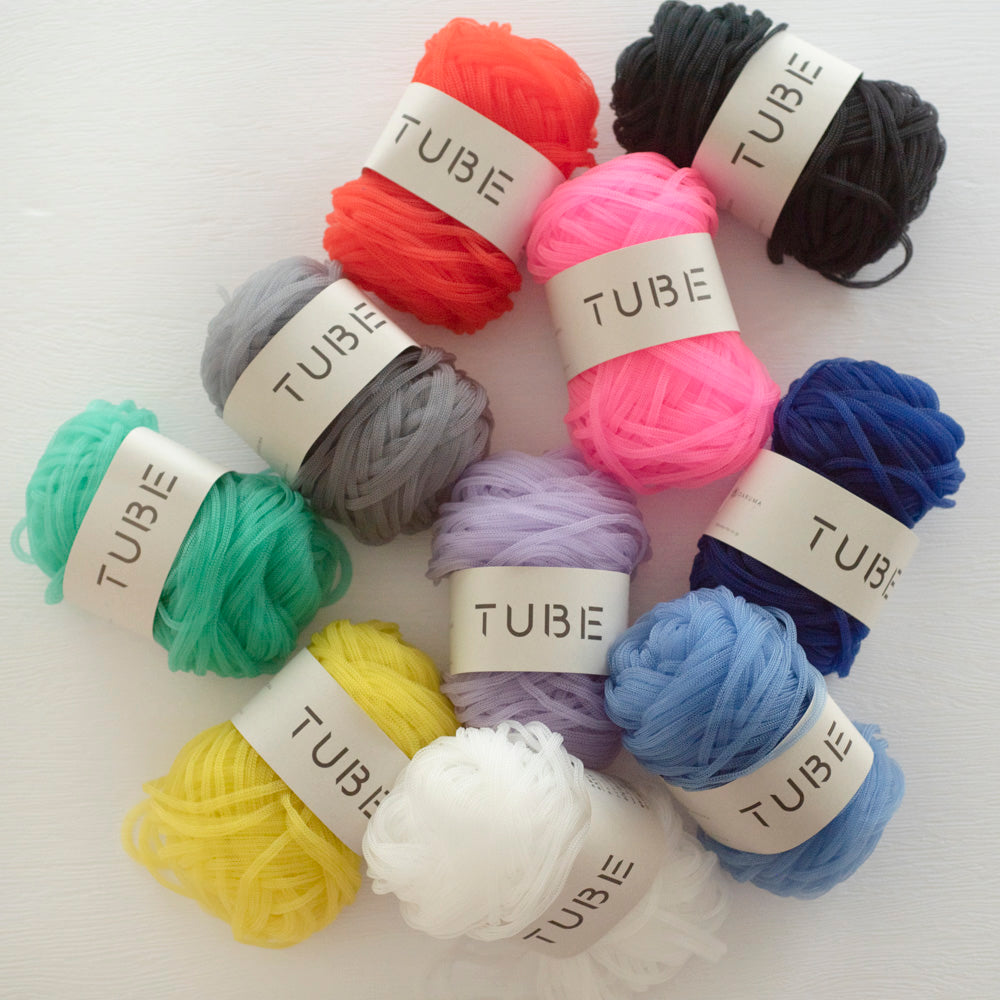 毛羽のない細いナイロンの糸をチューブ状に編んで1本の糸にしてあります。編み上がりは伸びにくいのでバッグやポーチなどの袋小物を編むのにちょうど良い素材。水に濡れても大丈夫なので夏のレジャーやおうちの水回りでも使えます。シンプルな編み地が映えるユニークな糸です。
