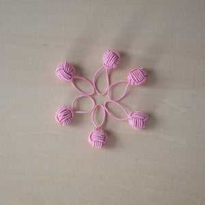 小さな組みひもボールのステッチマーカーです。6個入りセット。針サイズUS15まで対応しています。軽くて、ピンク色が目立って可愛いです。・6個セット・全長:約3 cm