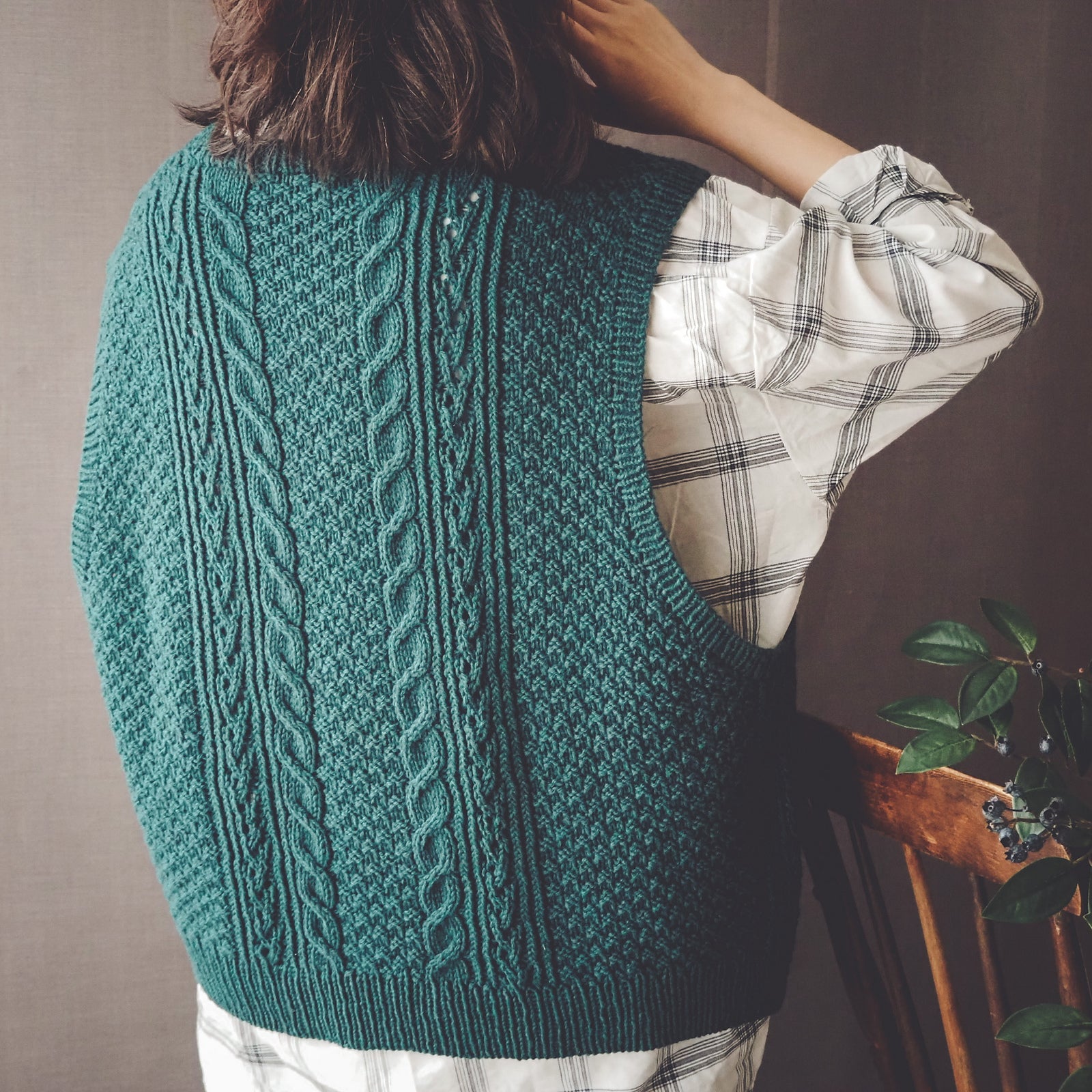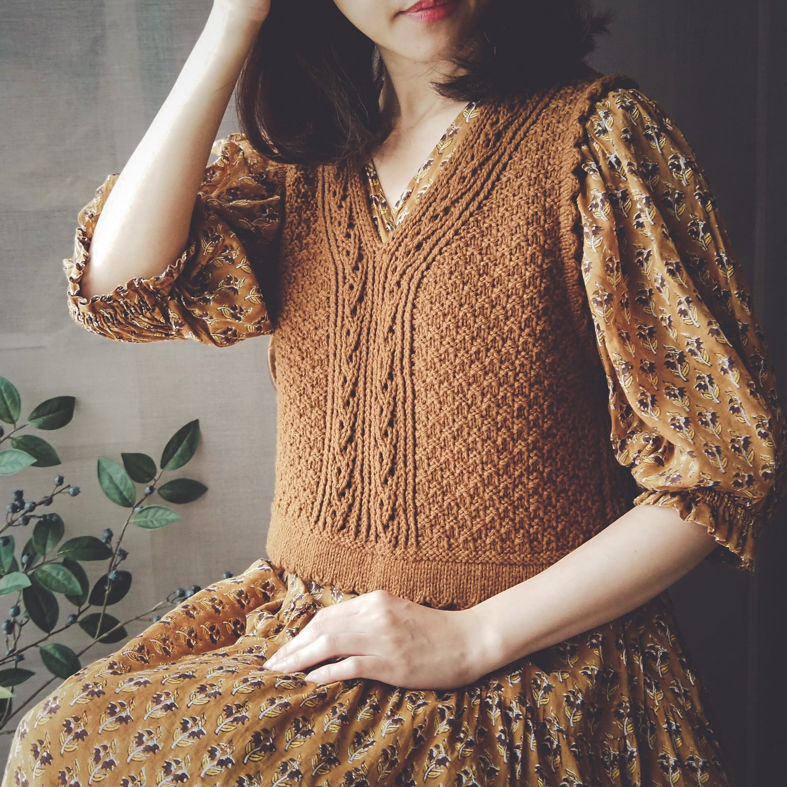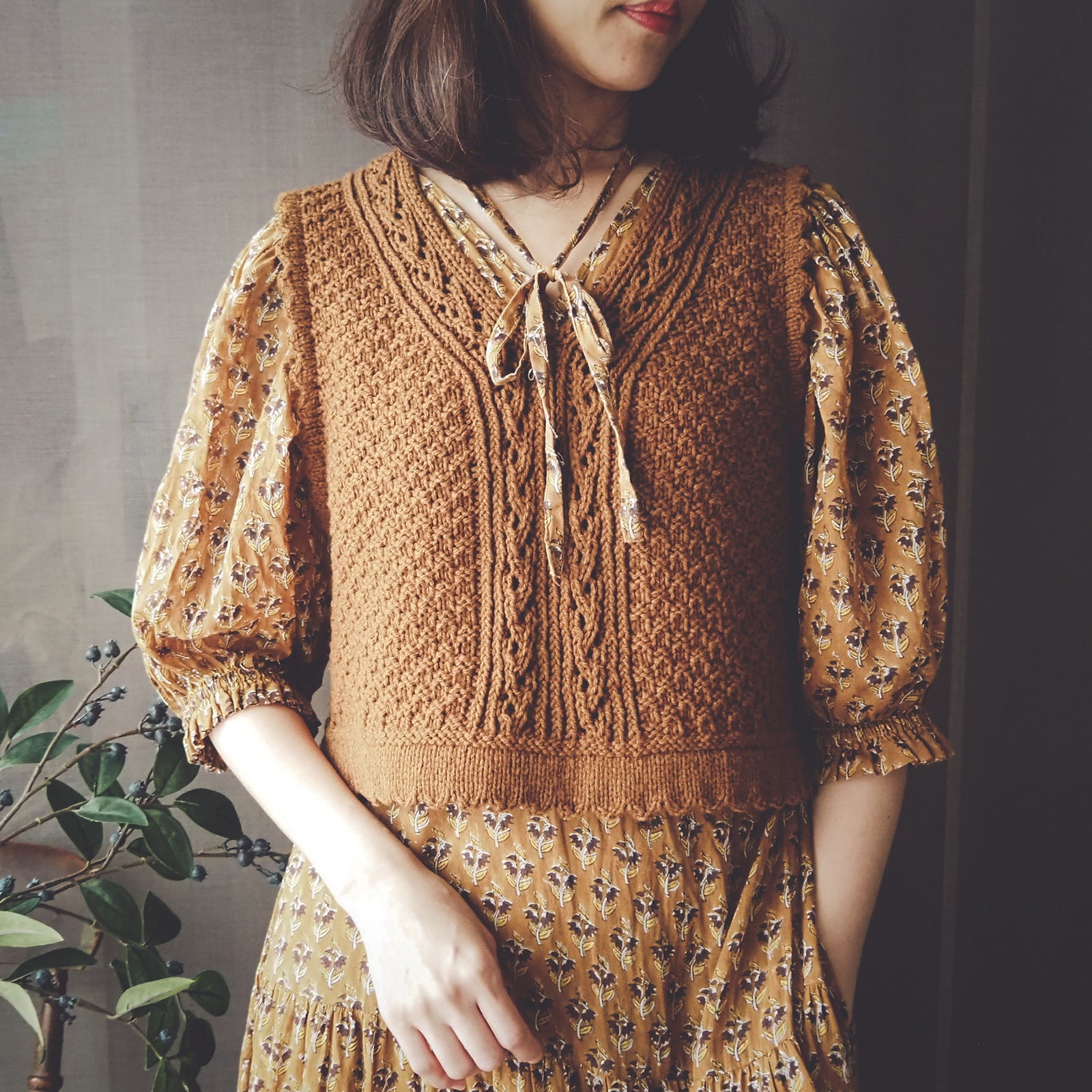 模様編みの可愛いヴィンテージライクなベスト、Laura Vest 。
