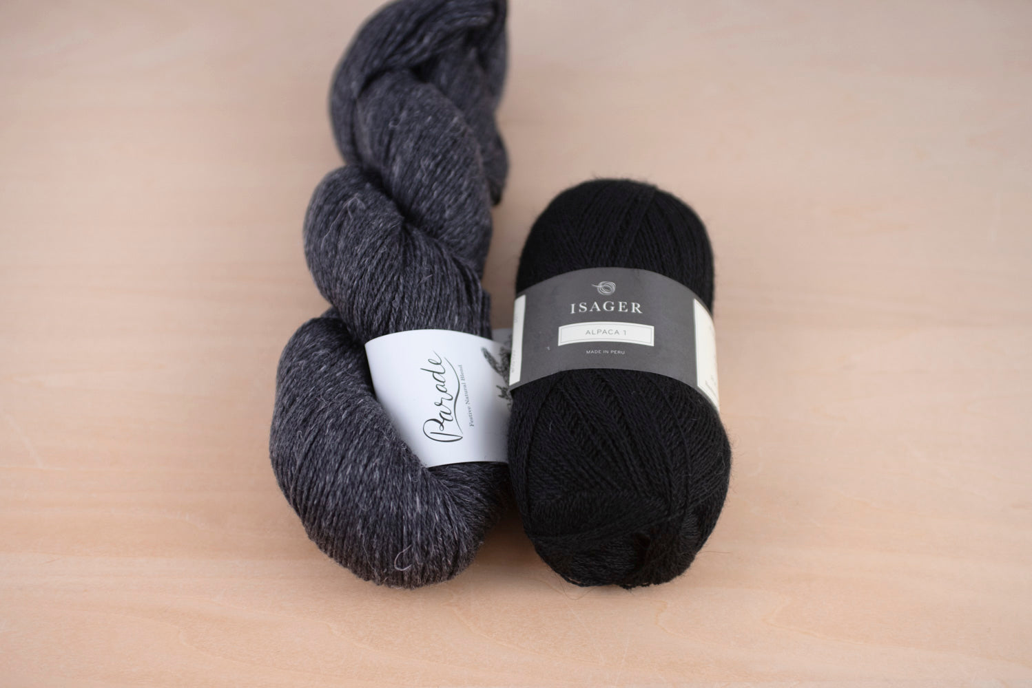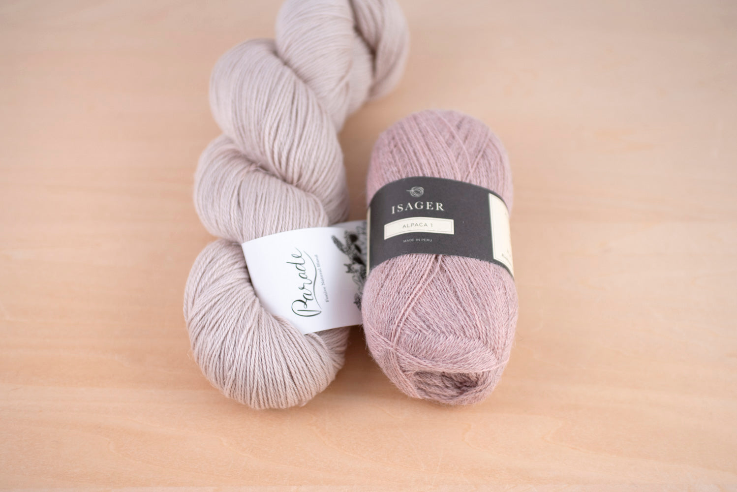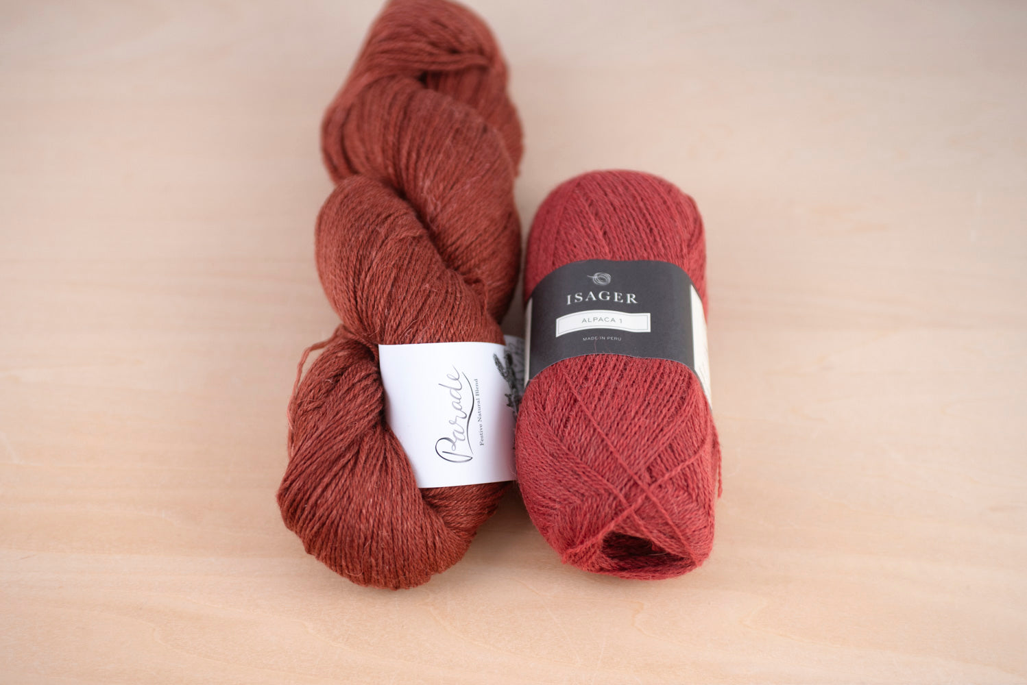サンプル色は、Isager Merilin col.16 と  Isager Alpaca 1 col. 16の引き揃え。