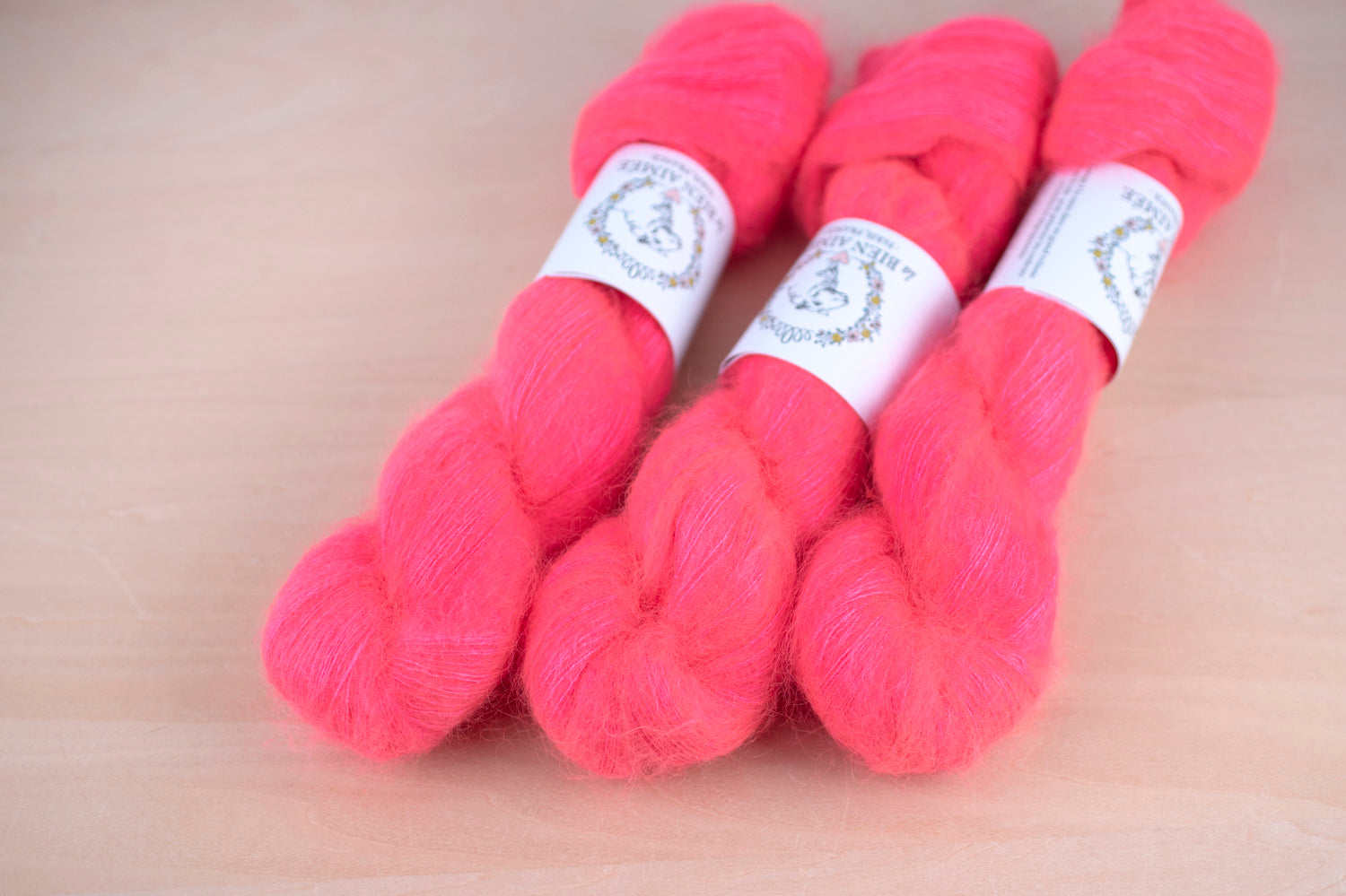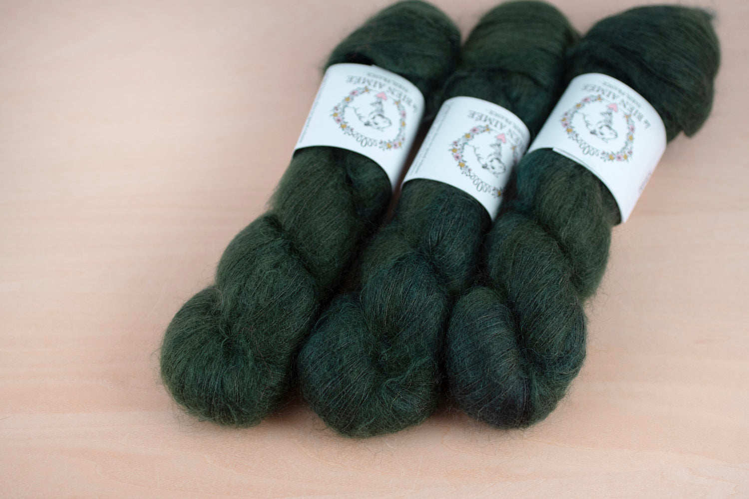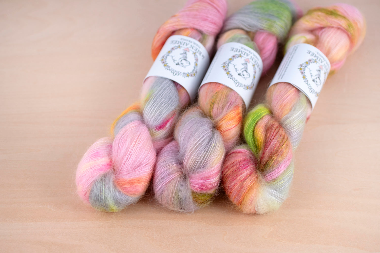 マットでしっかりとしたシルクの芯が、きめ細やかなキッドモヘアに包まれており、繊細ながらも豊かな毛羽立ちを生み出します。
