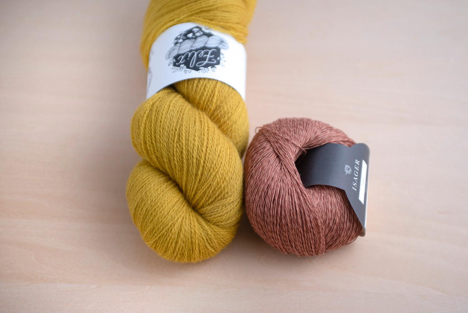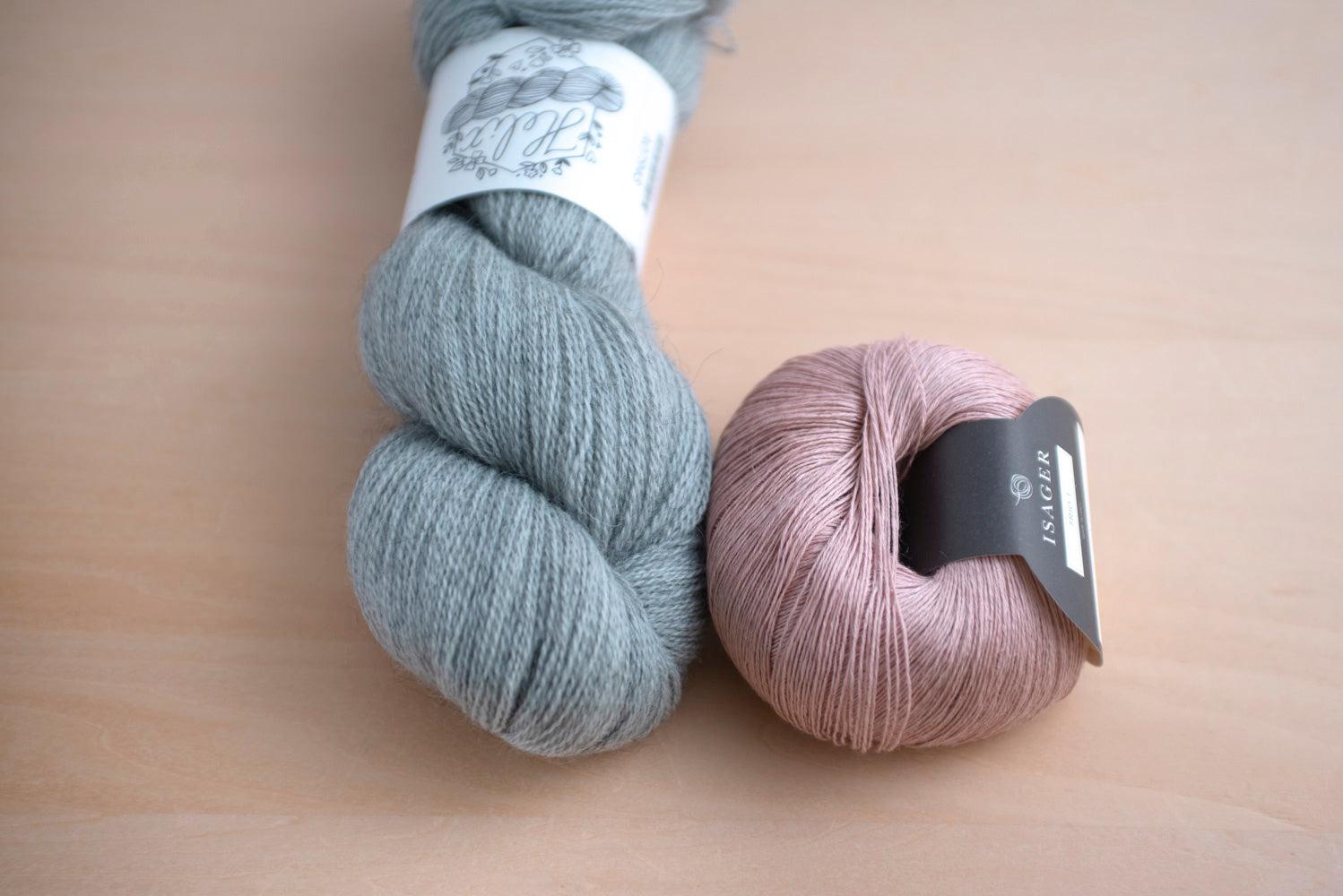 糸はLa Bien Aimée Felix(もしくはHelix)とIsager Trio 1と引き揃えで編みます。素材違いの作るメランジの編み地が美しく、肌触りが良いです。身頃に入る縦のライン(フラワーステッチ)がポイントです。