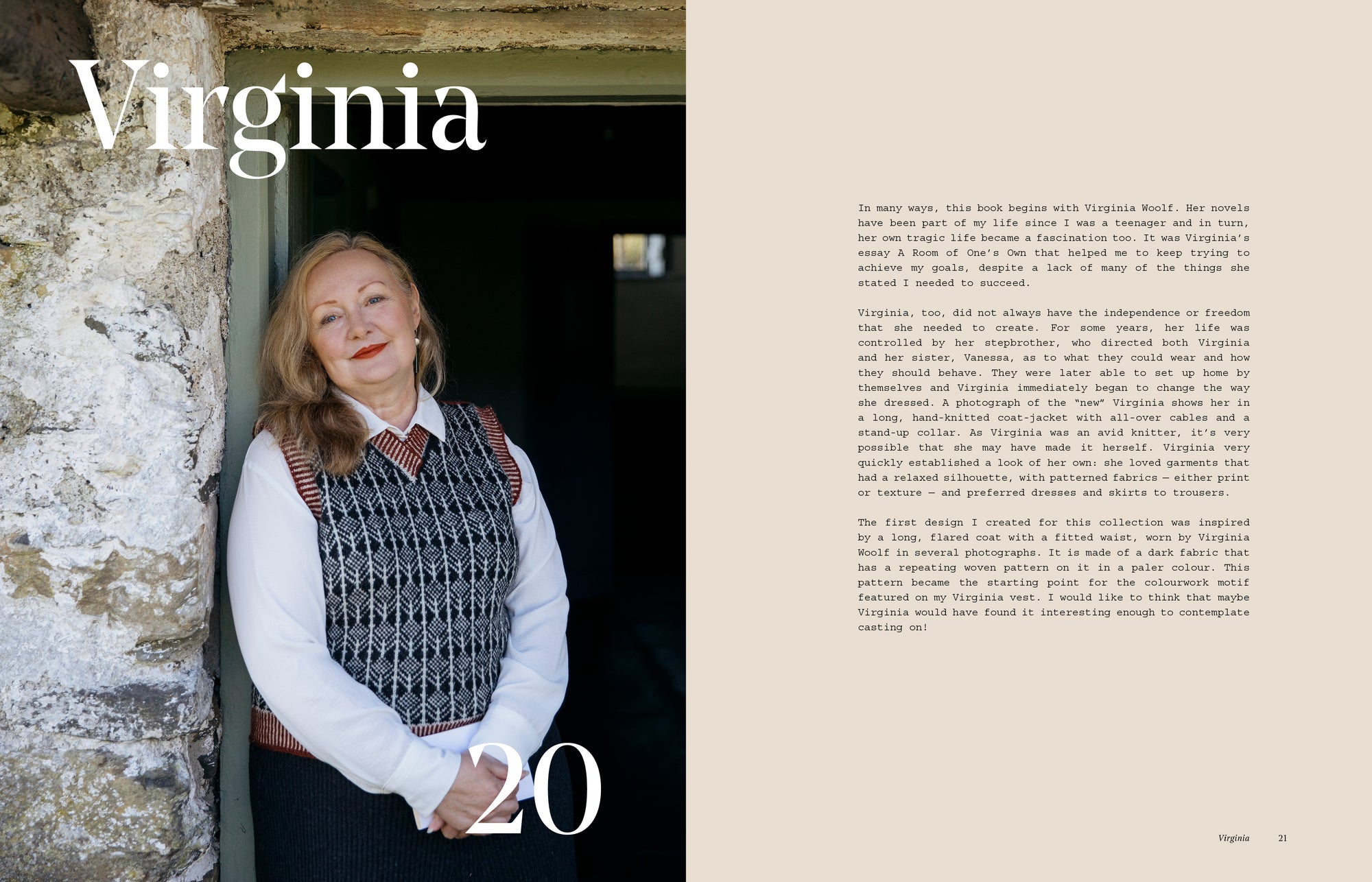 Echoesは、Susanの8冊目の本になります。彼女の人生に影響を与えた,現実と架空上の素晴らしい女性たちにインスパイアされたニットウェアがテーマになっています。ビアトリクス・ポターやヴァージニア・ウルフなどの作家、シンディ・ローパーやケイト・ブッシュなどのミュージシャン、活動家、アーティスト、ガーデンデザイナーなどが含まれます。