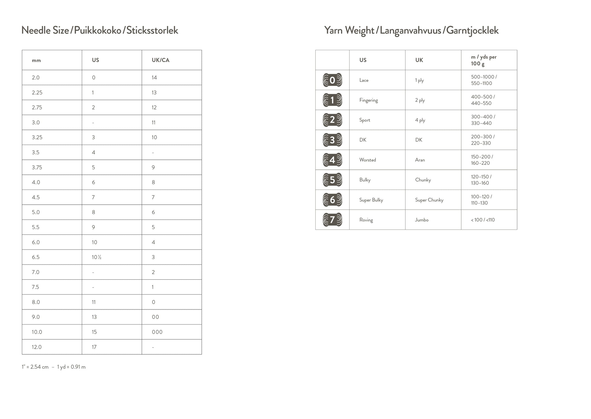 - 編み針のサイズ換算表、毛糸の太さ表や定規など、編みもの愛好家のための便利なページ付き