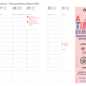Knitter's Year 2026 Weekly Plannerは、ニッターや作家向けに作られたコンパクトで美しいスケジュール帳です。プロジェクトのアイデアをメモしたり、進捗を記録したり、はたまた世界中のファイバー関連のイベントに参加する計画を立てたり、創作活動を整理してまとめるのにぴったりです。世界中の120以上のファイバー・編み物関連のイベントを掲載しているので、クラフトコミュニティの情報を得るのに役立ちます。