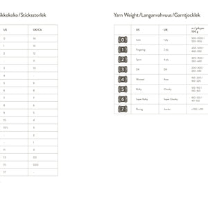 - 編み針のサイズ換算表、定規、毛糸の太さ表など、編みもの愛好家のための便利なページ付き