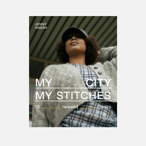 「My City, My Stitches」は、ヘルシンキ東部の多様で多文化な街を旅するように楽しめるニットブックです。全15点のリラックス感のあるアーバンニットは、Jenny Ansahがそれぞれの街の特徴にインスピレーションを得て, 街と自分自身とのつながりを込めてデザインしています。