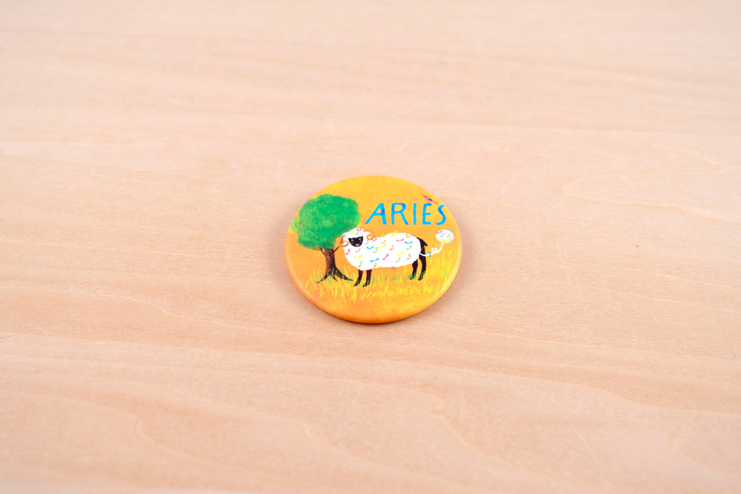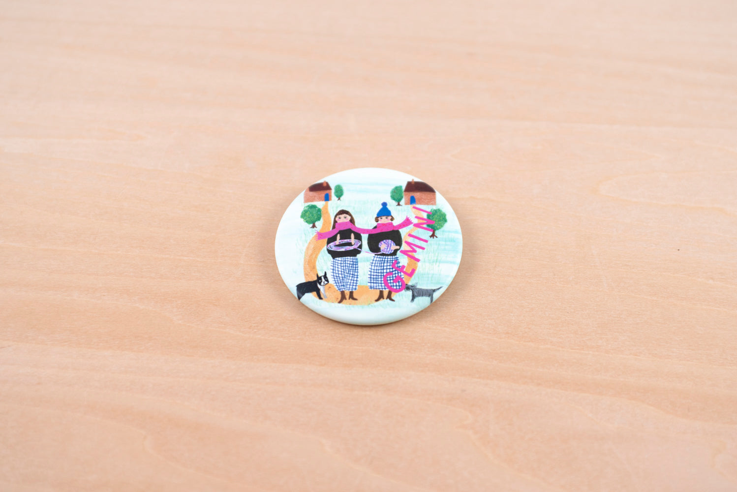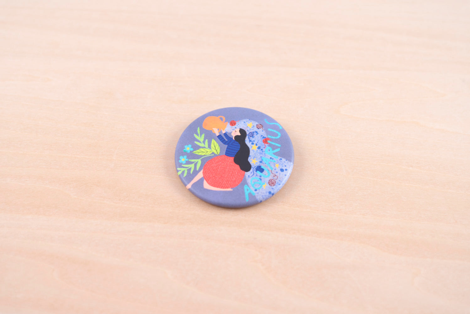 メリが描き下ろしたキュートな星座イラストの缶バッジ。