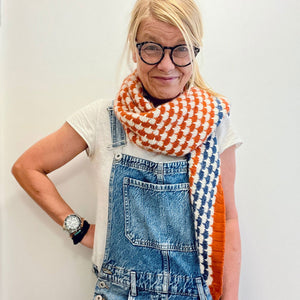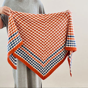 BAO BAO shawlは、全面にステッチが施された左右対称の三角形ショール。ちょっとレトロな可愛さが特徴的です。