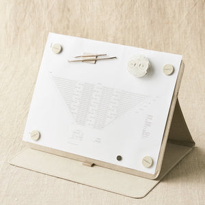 編みものパターンを読む時の便利ツール。金属板を内部に施したボードでできていて、写真のように自立させることができるので、パターンをマグネットで留めて、読みやすい位置に置いておくことができます。