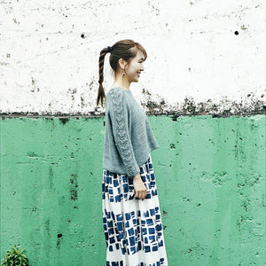 amirisu18号掲載のKapuaは、裾からボトムアップで編むセーター。短めの丈がスカートにもパンツスタイルにも合う1枚です。
