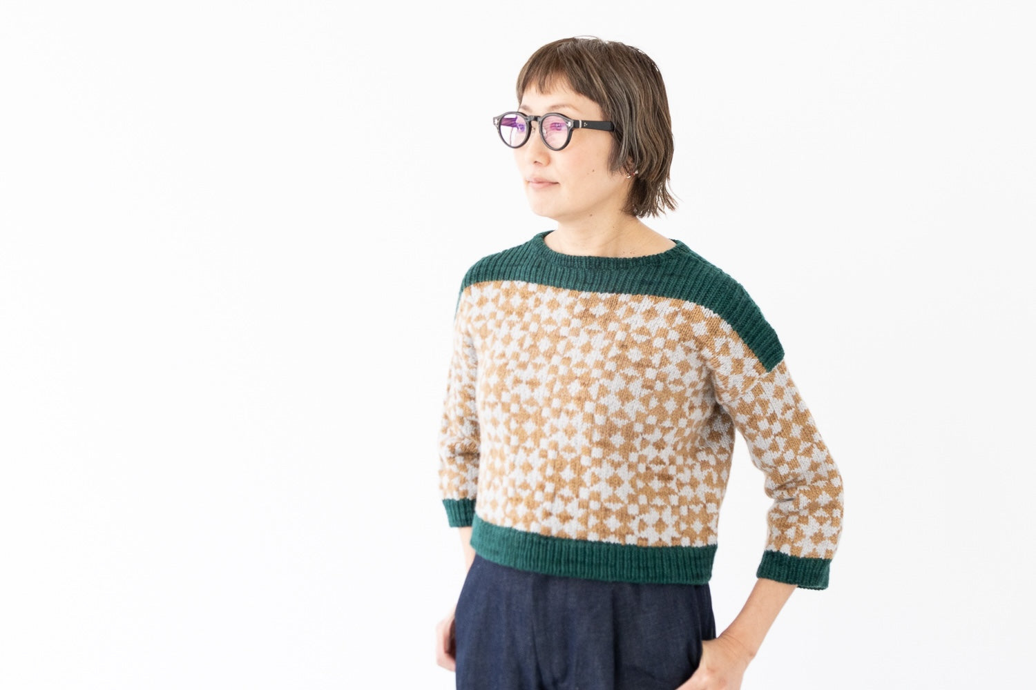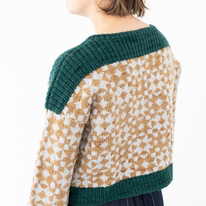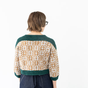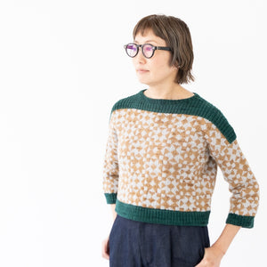 Andrea Mowry デザインのFramed。Rhinebeck Sweaterでは、たくさんの人が素敵に自分のFramed セーターを着た,笑顔あふれる写真が見られましたね。私たちもぜひ編みたい!ということで、日本語パターンを作って、新しい糸Waltzでキットをご用意しました。