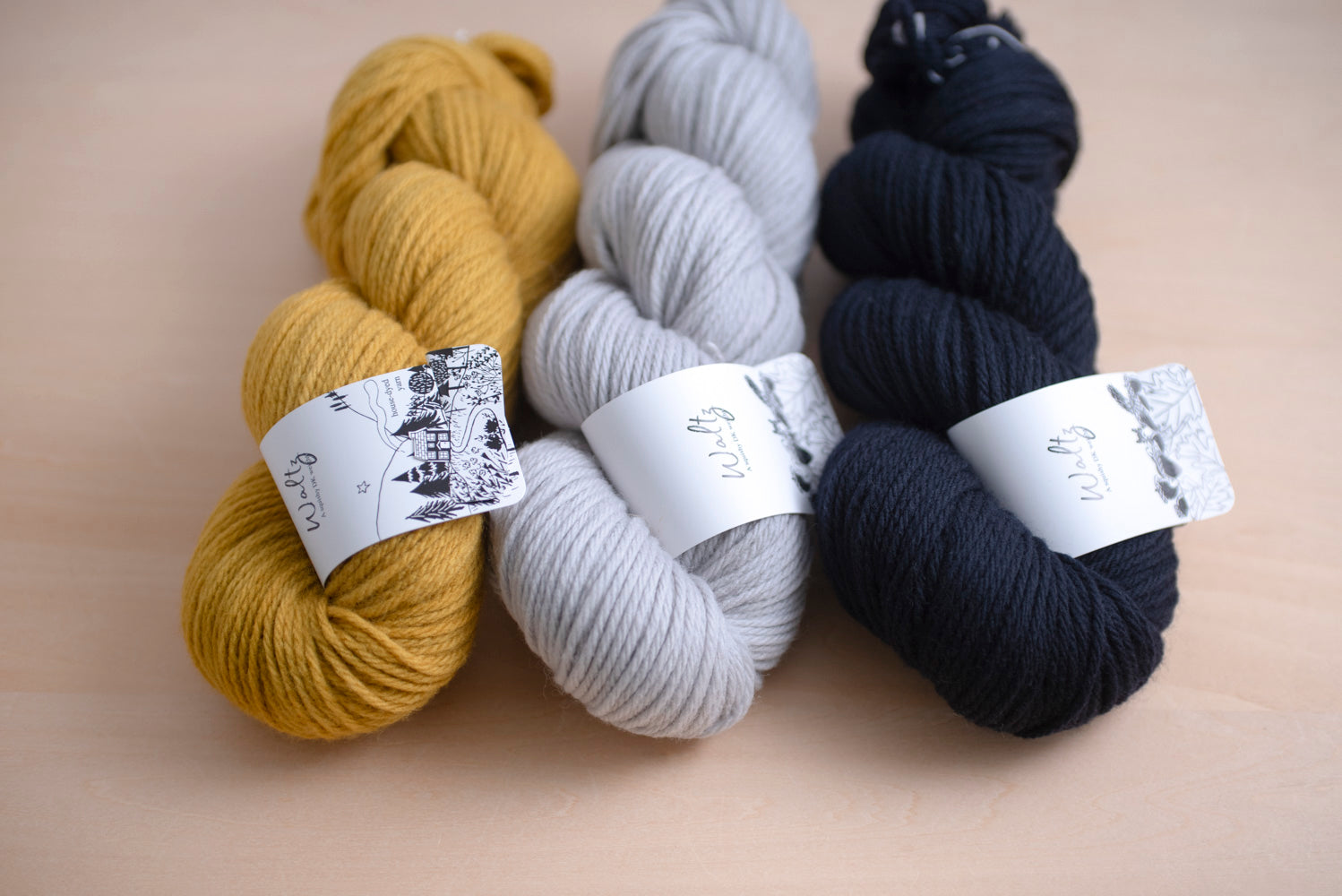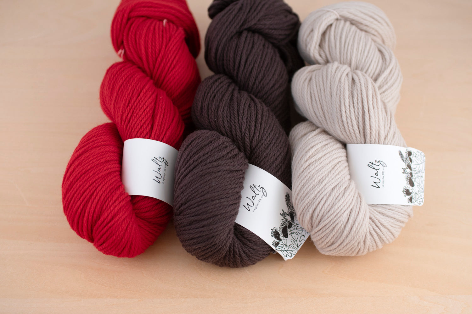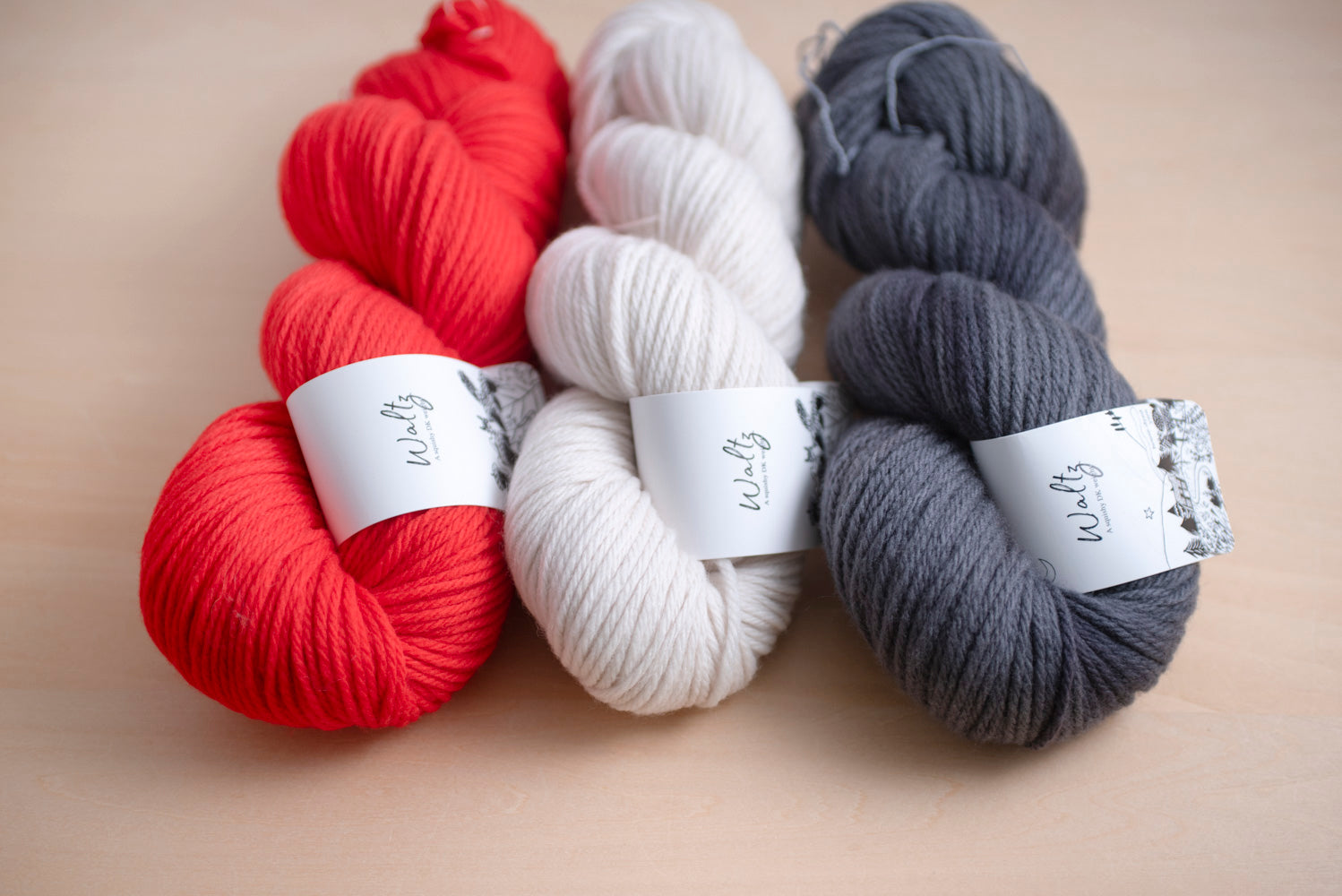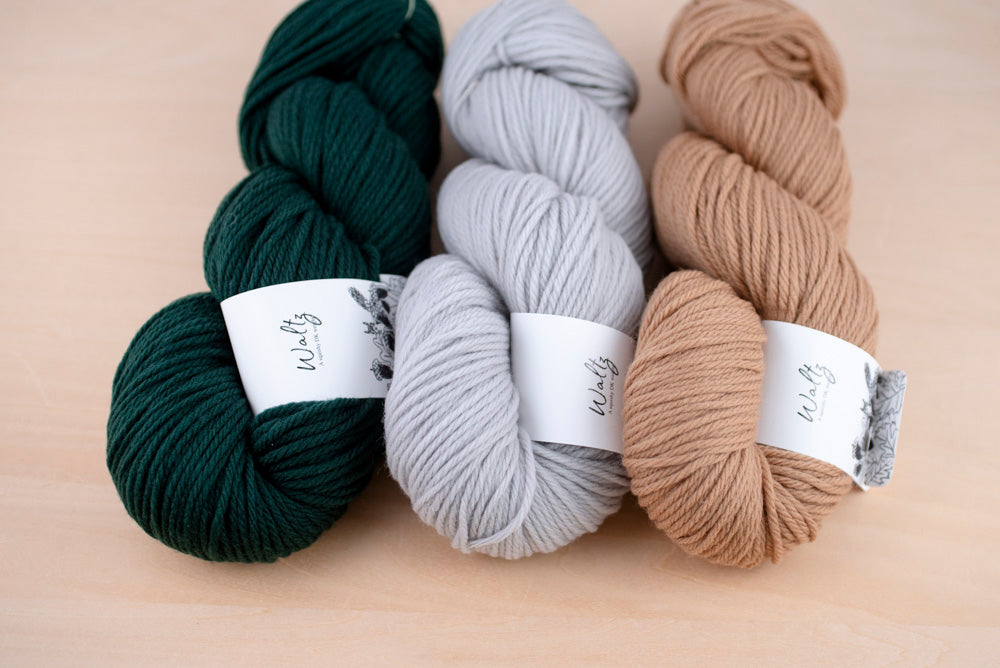 くっきりした色合いで編み込みがきれいに出るWaltzが好相性。秋冬を楽しく過ごせる色合わせを考えました。