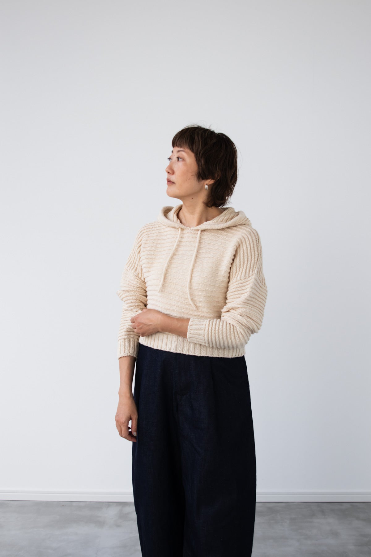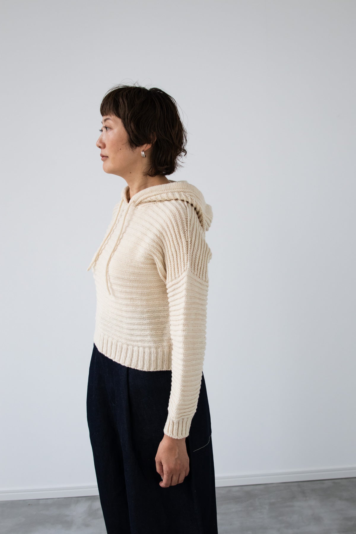 ポコポコのテクスチャーが可愛いクロップト丈のパーカー。