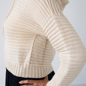 このキットでフードなし、クルーネックバージョンが編めます。