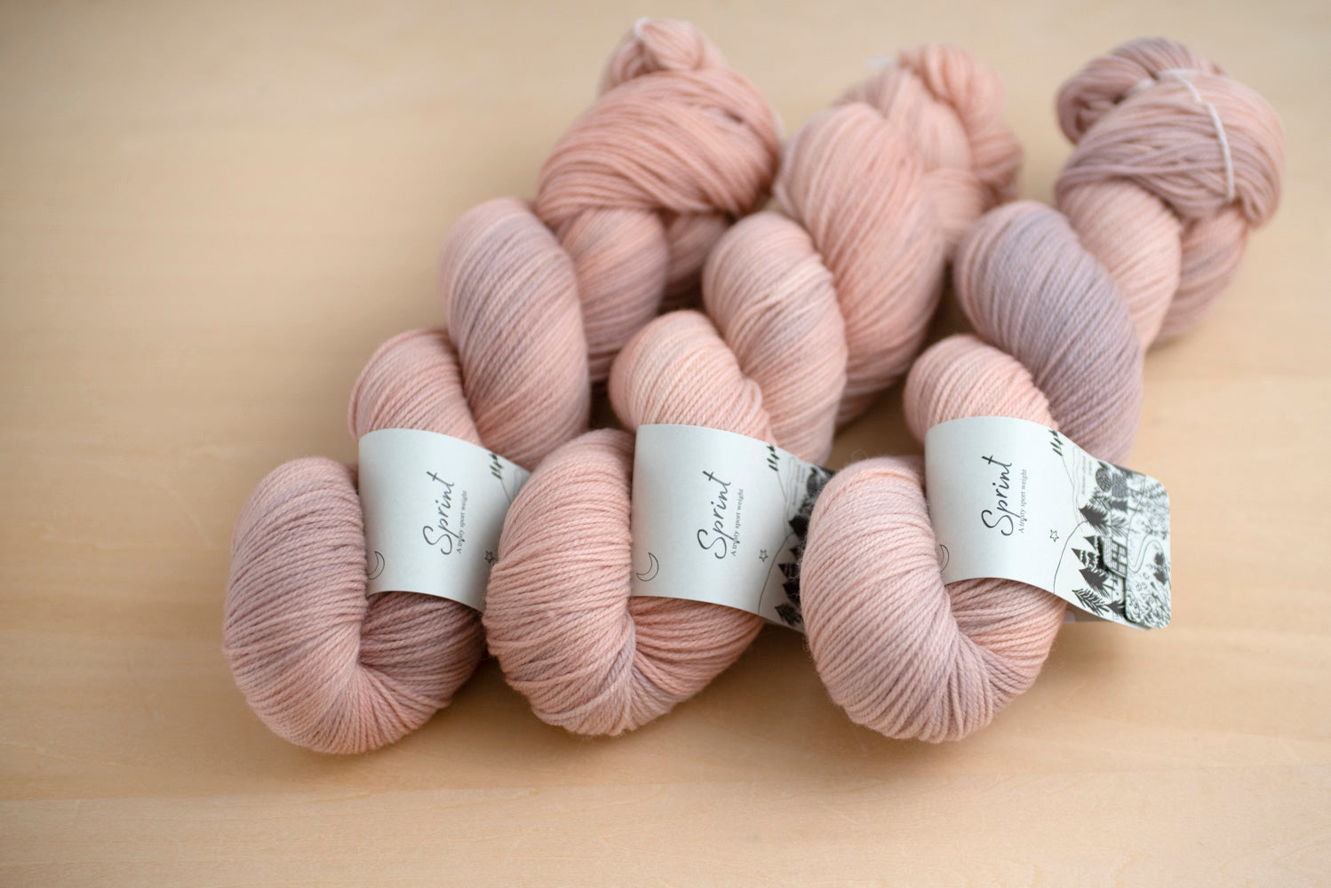 サンプル色(Marshmallow), Torte, Cave, Tsavoriteは少し長さの短い、1カセ 289m / 約96g のカセとなるため、1カセにつき220円お値引きしております。1カセあたりの長さは短いですが、太さや品質は通常のSprintと同じです。