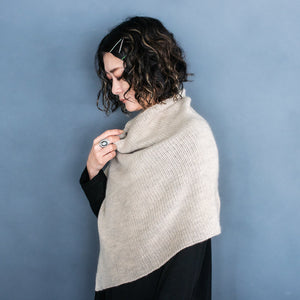 シンプルな形のポンチョなのでどんな人にも似合います。以前に別の糸でもキットを販売していましたが、柔らかな手触りのLine Weightでも編んだらきっと素敵だよね、ということで、新たにLine Weight用にパターンを書き直しました。