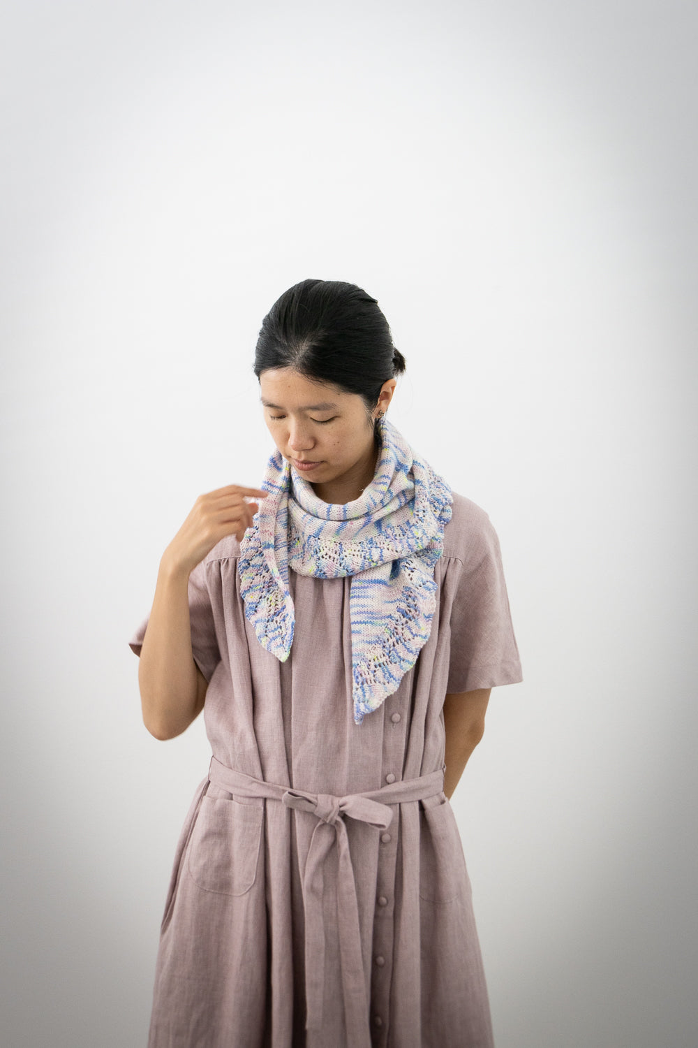 1かせで編めるショール、はじまりのショール。トクコがデザインしました。