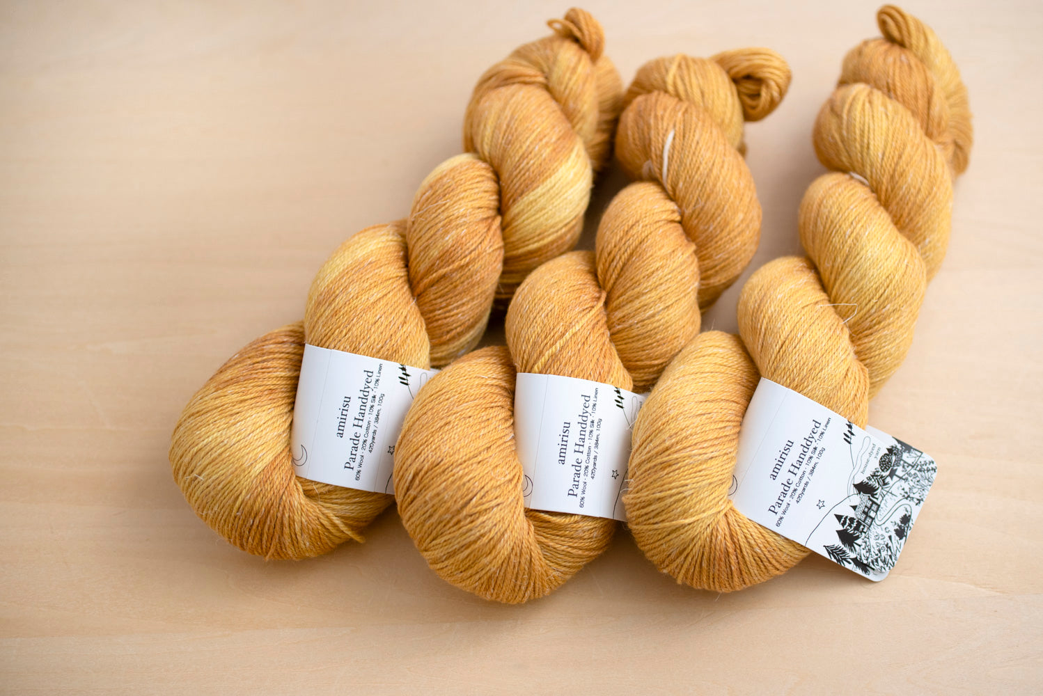 こちらはParadeで編むキットです。Paradeは少し入ったリネンとシルクのおかげで淡く上品な雰囲気になります。透明感があって、柔らかくて、綺麗なドレープが出て、春夏のアクセサリーにおすすめです。