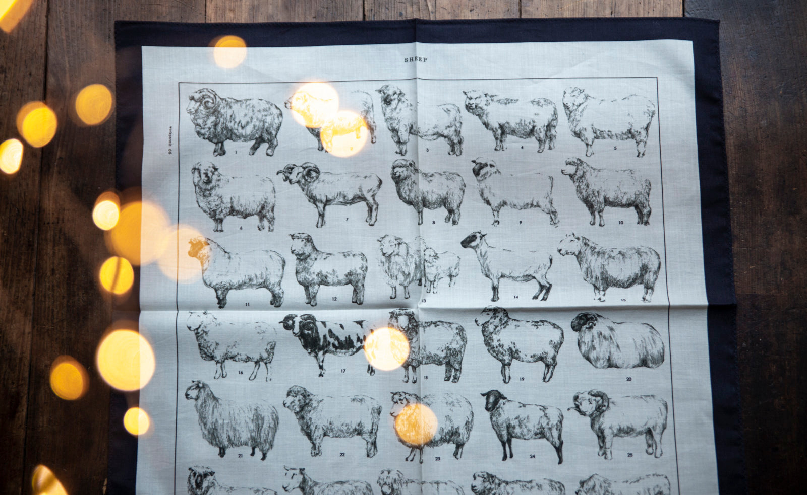 ASEEDONCLÖUDから羊のハンカチを入荷しました。