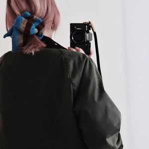 従来のシュシュとは異なり、ガーリーテイストが苦手な方でも楽しめるようデザインされた、モダンな形のシュシュです。ヘアアクセサリーとしてだけでなく、手首に重ね付けしてスタイリングのワンポイントにしても。