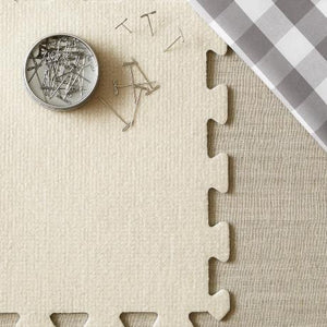 ・マットの素材のEVA発泡タイルは靴底にも使用されている素材で、ピンがしっかりと固定できます。水を吸収しないので、タオルなどよりも速く乾きます。また、水が浸透して床を濡らすこともありません。