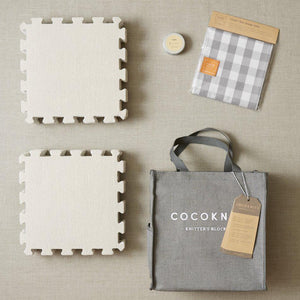 手編みのニットの仕上がりはこのブロッキングで決まると言っても過言ではありません。ニッターの気持ちを熟知したCocoknitsのブロッキングセットは、マットとコットンクロスとTピンがセットになって、ブロッキングする時にさっと用意できて便利です。