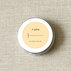 cocoknitsからTピンを入荷しました。ブロッキングワイヤーについているTピンでは足りないという時に、追加用にどうぞ。お洒落な丸い缶に入っているので、収納に便利です。ステンレス製なので、濡れた作品をブロッキングしても錆びる心配がありません。