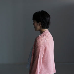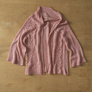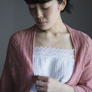 amirisu16号掲載の、Wanderlust Linenで編むカーディガン、Bird。