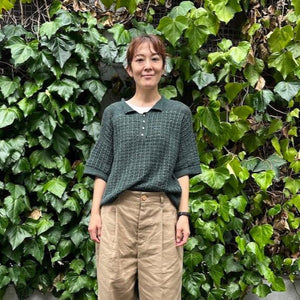 編みもので、レース編みで、ポロシャツタイプというのが新鮮です。もともとTrekを使ってデザインされたパターンだったのですが、HiromiさんがParadeで編んでくれたのがとても素敵だったので、Paradeでもキットを販売します。おすすめです。