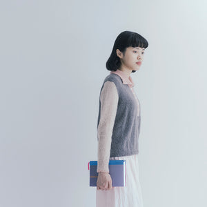 色使いがキュートな長袖ポロシャツ、Amelie。amirisu Flutterで編むので直接肌に触れても柔らかく、Cocoknitsメソッドのおかげで肩周りのフィット感も抜群。