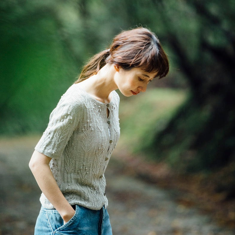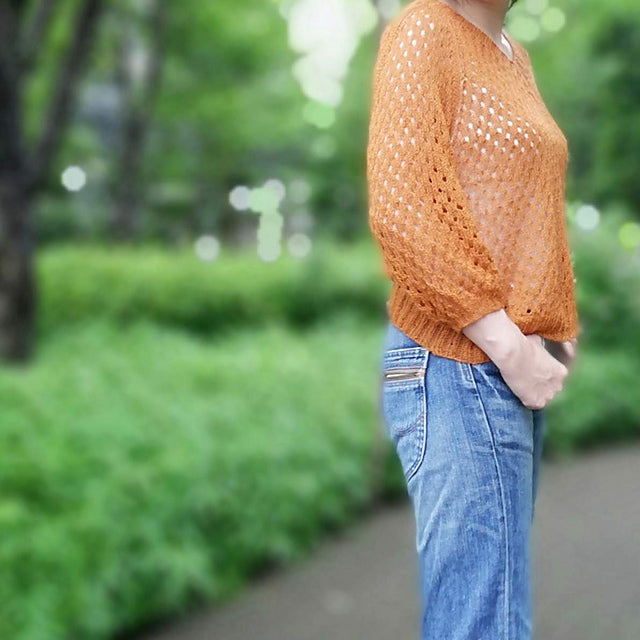 適度な光沢と柔らかさが生み出す美しいドレープは、大人っぽい仕上がりを実現。肌が美しく映える色合いで、夏の光に映える編み上がりをお楽しみいただけます。