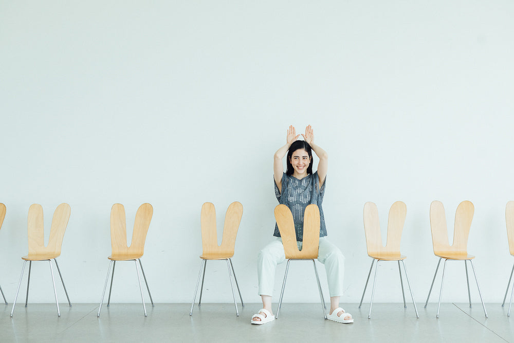 サイズ2のサンプルを身長166 cmのモデルが余裕31 cmで着用。