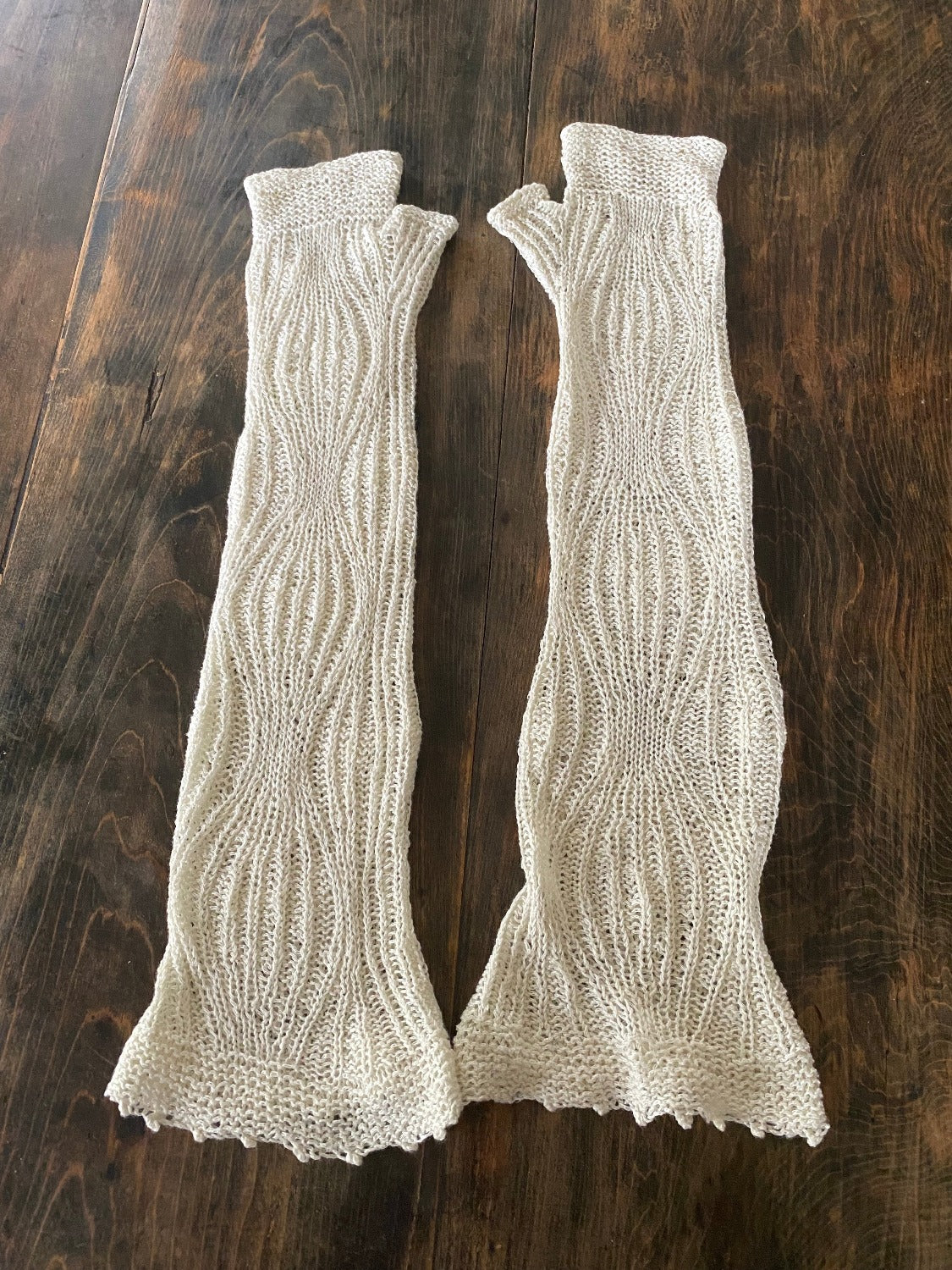 KIFUNEは、amirisu Wanderlust Linenで編む、親指を入れられるアームカバー。腕を通すとほのかにひんやりとして気持ちが良いです。目にも涼やかに清流のような模様を施し、普段のワードローブに合うようにシンプルに仕上げました。