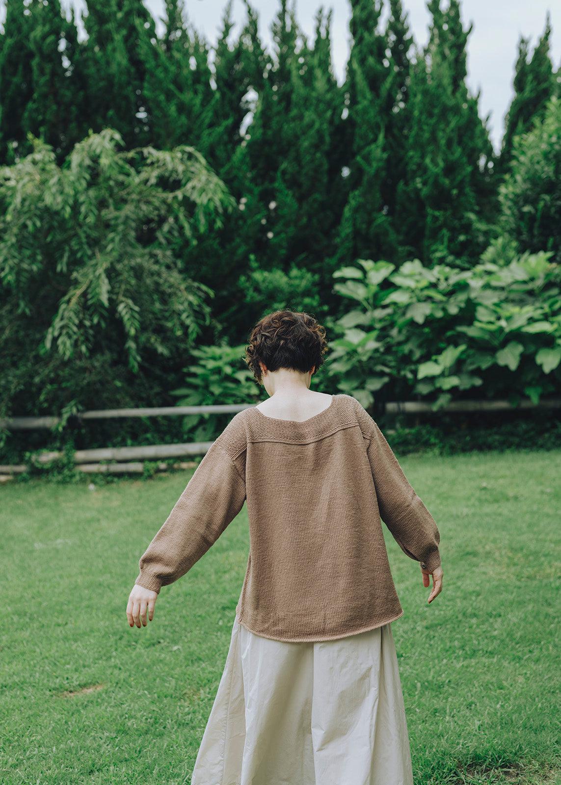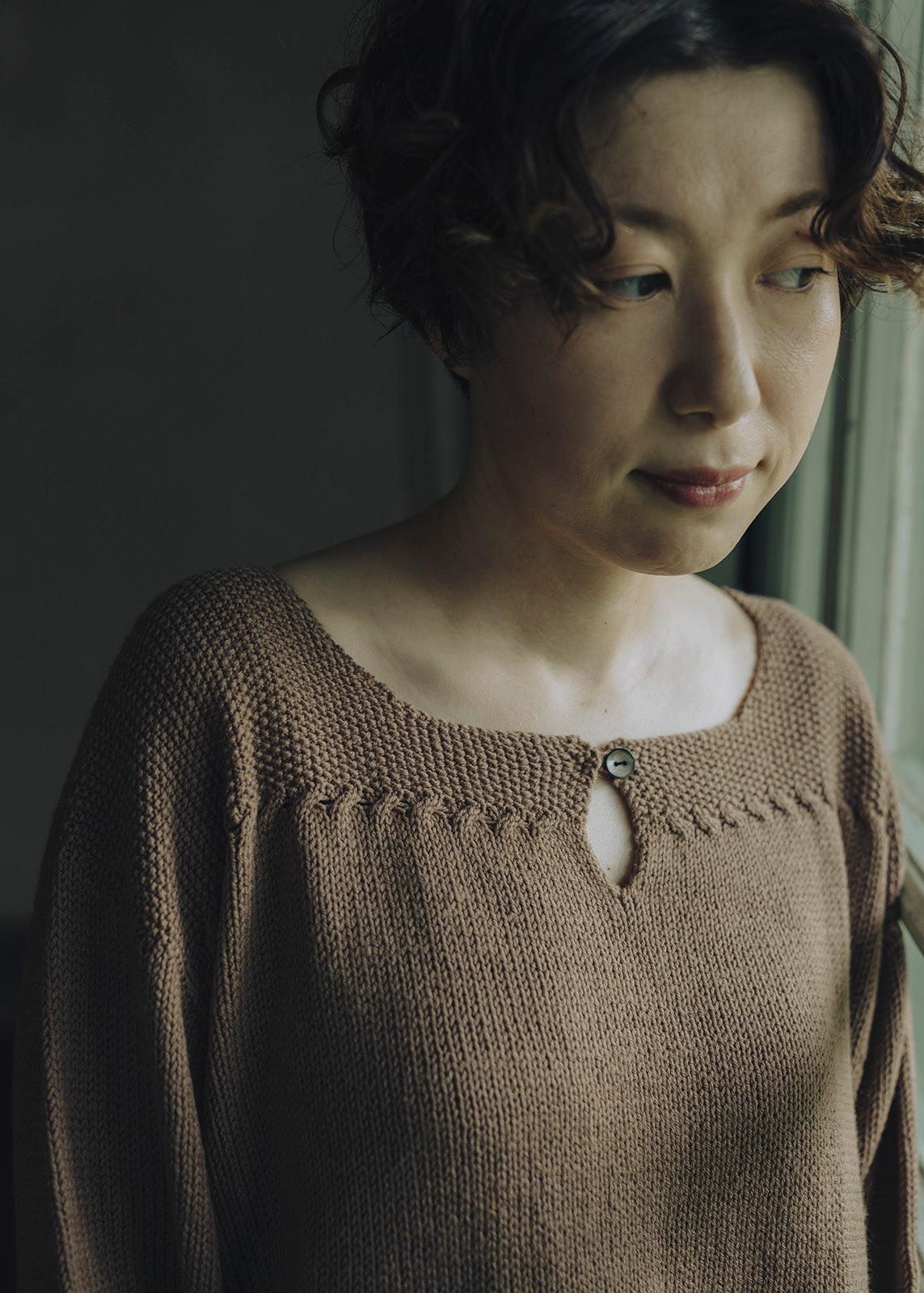 裾のシルエットや袖口のギャザー、襟ぐりの開き具合、背中のラインなど細部にこだわりの詰まった可憐なプルオーバー。柔らかな糸で編むのでドレープができて、身体のラインが美しく見えます。光沢のあるボトムスや靴と合わせてコントラストを楽しんで。