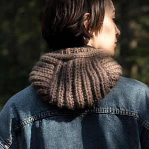 ゆるいチェーン状の糸で、バルキーなのにとても柔らかく軽いです。シンプルな編み地を編むだけで素敵に仕上がり、秋冬の暖かくて心地よいプロジェクトをさっと編めます。