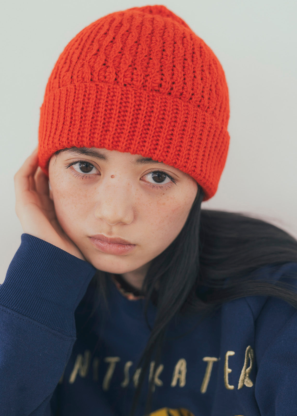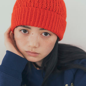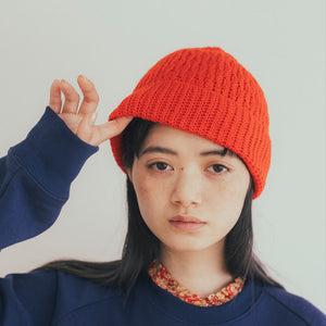 ゆらめく波のようなリブ模様の帽子。このリブ模様はデザイナーが育ったアイルランドの港町で使われていた、漁網の質感からインスピレーションを得たそうです。ベビーアルパカとメリノウールをブレンドしたAiry Wool Alpacaで編むので、軽くて柔らか。シンプルなのでどんなコーディネートにも合わせやすいはず。