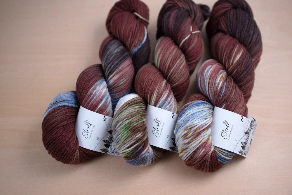 Stroll Handdyed でキットをご用意しました。適度に弾力があるので、ケーブルがもっちりと仕上がります。